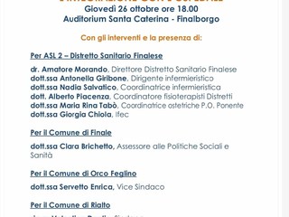Domani, giovedì 26 ottobre, presso l'Auditorium Santa Caterina a Finalborgo, avrà luogo un incontro con la cittadinanza per discutere la nuova medicina del territorio e l'integrazione con l'ospedale. L'evento, che segue le precedenti iniziative nei comuni di Calice Ligure e Noli, ha lo scopo di informare i cittadini sui servizi sanitari a disposizione sul territorio, la loro organizzazione e le modalità di accesso, con un'enfasi particolare sull'integrazione tra territorio ed ospedale, in linea con quanto previsto dal PNRR (Piano Nazionale di Ripresa e Resilienza) e dal DM 77 (Decreto Ministeriale 77).
