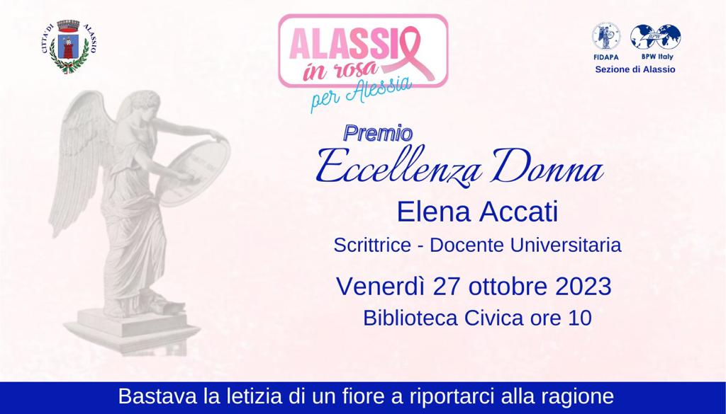 “Le candidate premiate – ricorda la presidente Fidapa Cinzia Salerno Voglio in particolare ringraziare - sono selezionate attraverso una rigorosa selezione che ha coinvolto il nostro direttivo e siamo contente della scelta di premiare una donna che ha saputo conciliare con successo la sua carriera con la vita familiare. La Fidapa di Alassio dimostra ancora una volta la sua dedizione nel promuovere l'eccellenza femminile e il ruolo delle donne nella società contemporanea. Questo incontro sarà un altro importante momento di riconoscimento e valorizzazione delle competenze femminili, contribuendo a creare un ambiente più equo e inclusivo per tutte le donne che cercano di emergere nel loro campo di lavoro. La premiazione dell'Eccellenza Donna è un evento di grande importanza per la comunità di Alassio e speriamo che questa iniziativa continui a crescere e ad ispirare altre donne ad eccellere nella propria professione, dimostrando che non esistono limiti all'impegno e al talento femminile. Ed il premio ha proprio l'obiettivo di valorizzare e portare all'attenzione della collettività le donne che testimoniano in modo attivo, grazie alla loro determinazione e passione, la storia della crescita ed emancipazione. In particolare voglio ringraziare Stefania Piccardo, presidente dell'associazione albergatori di Alassio per il suo contributo e sostegno ad organizzare questi importanti eventi e le allieve EDFA ed in particolare la signora Genevieve Bene, aspirante insegnate, guidata dalla presidente Tiziana Albarello, presidente del sodalizio, insegnante e giudice che realizzeranno una composizione Floreale in onore alla professoressa Elena Accati"