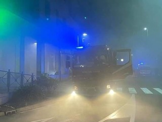 Vigili del fuoco mobilitati nella notte per un incendio divampato all'interno di un negozio di ceramiche ad Albisola Superiore.