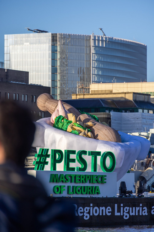 “Il pesto è uno dei nostri prodotti più noti e riconoscibili - ha detto il presidente Toti - la seconda salsa più consumata al mondo. La Liguria con il pesto occupa un grande ruolo nell’immagine dell’Italia all’estero e abbiamo voluto renderlo simbolo per promuovere tutto il nostro territorio, con i suoi colori, sapori e tradizioni. Festeggiamo un anno che sta andando molto bene dal punto di vista delle presenze, nonostante le tante crisi e guerre che attraversano il mondo, oltre al massimo dell’occupazione mai raggiunta nel nostro territorio e straordinari risultati nell’export. A tutto questo va dato il supporto che merita: se pensiamo che negli anni scorsi la Liguria era totalmente assente dal mercato internazionale del turismo e dell’enogastronomia, ora invece la nostra Regione è una piccola superpotenza, diventando una delle regioni d’Italia che è cresciuta di più nel campo del turismo. In questo caso abbiamo utilizzato un metodo di marketing già usato molto dai grandi marchi, portando un oggetto iconico come il mortaio nel Tamigi, poi nella Sprea di Berlino, nella Senna a Parigi e sulla darsena dei Navigli di Milano. Una strategia che sta facendo sì che la Liguria, anche in una fiera nella quale competiamo con i più grandi al mondo, sia presente, visibile e riconoscibile”.