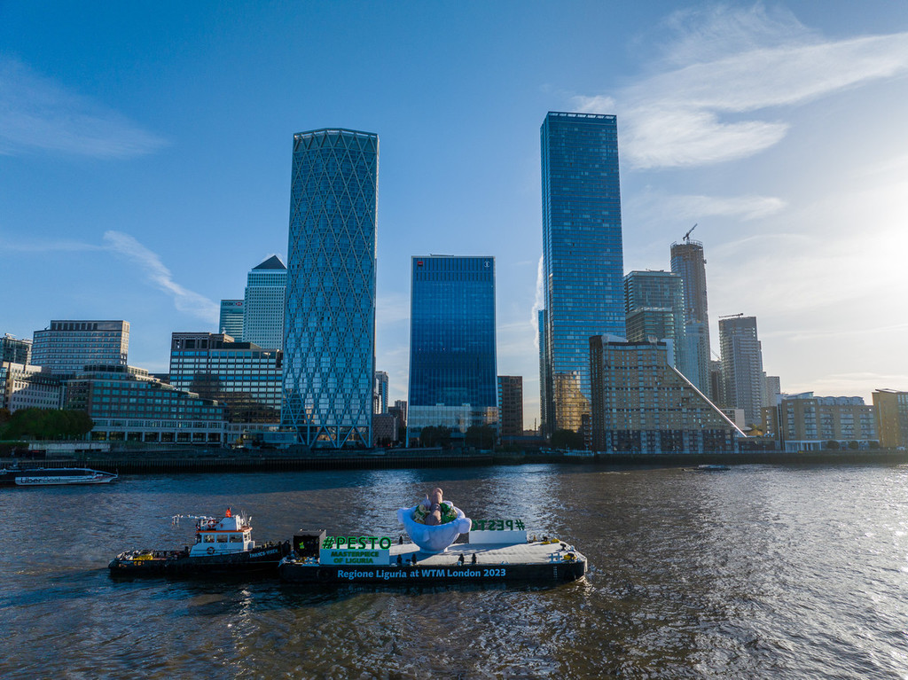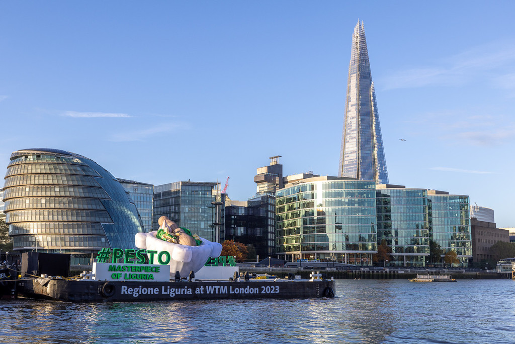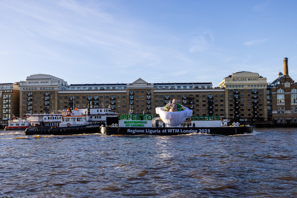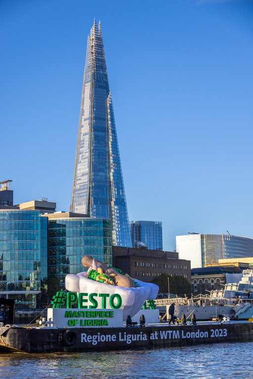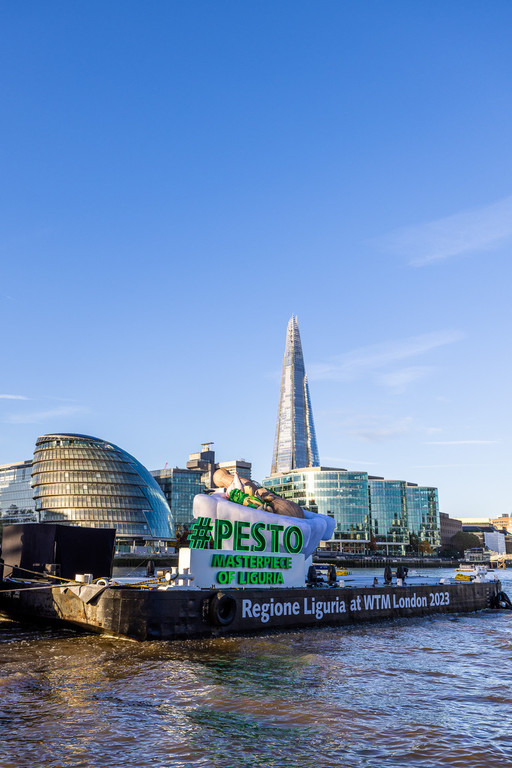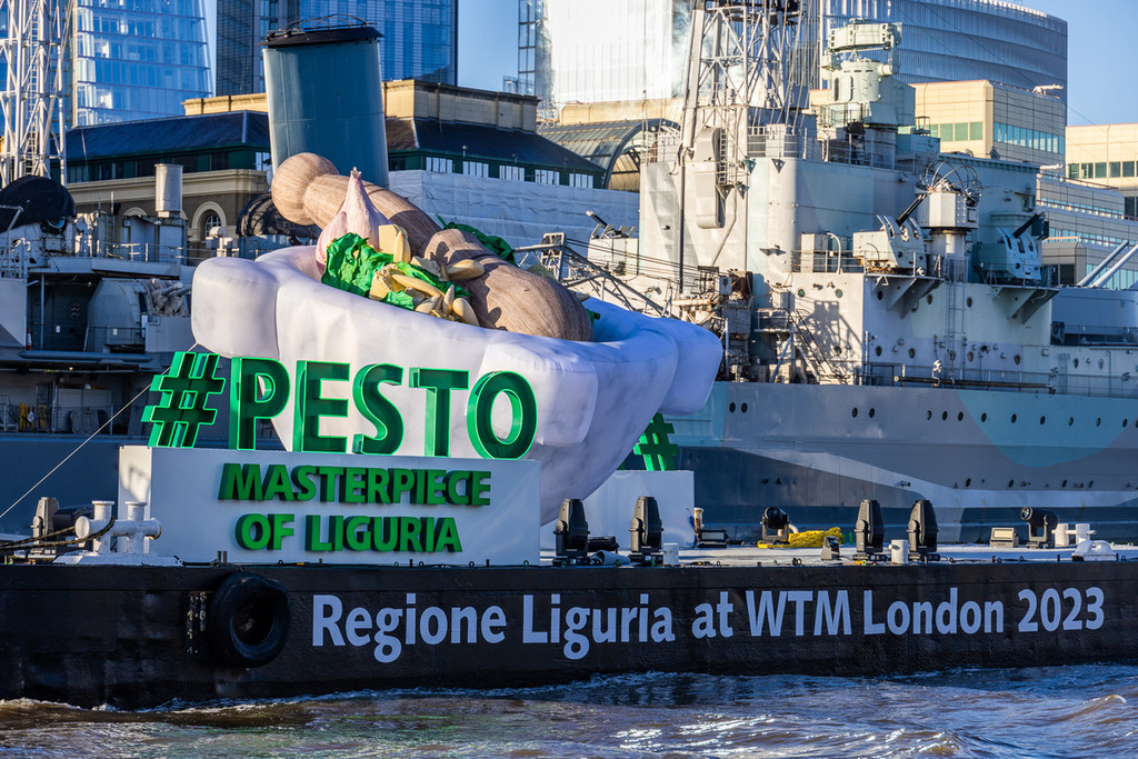 Il Tamigi si colora di verde pesto, portabandiera della Liguria in occasione della fiera del turismo mondiale WTM World Travel Market, che riunisce a Londra da oggi all’8 novembre i protagonisti del settore. Grazie all’installazione immersiva a forma di mortaio gigante – con i suoi 6 metri d'altezza per 8 metri di larghezza in navigazione sulle acque del Tamigi – anche l’Inghilterra premia l’enogastronomia ligure come eccellenza del Made in Italy. Un’iniziativa di promozione territoriale di grande impatto, a cui si abbina la semifinale del Campionato mondiale di Pesto al mortaio organizzata da Regione Liguria in collaborazione con Camera di Commercio. La gara permette di individuare uno dei protagonisti della finale che si svolgerà a marzo a Genova. Queste le iniziative della campagna #Pesto Masterpiece of Liguria, inaugurata oggi all’Hotel Sea Container di Londra dove il governatore Giovanni Toti, insieme allo chef Roberto Panizza, ideatore del Genova Pesto World Championship, incontrerà i giornalisti internazionali e stakeholder per parlare del ‘brand’ sinonimo di crescita economica, turismo e competitività.