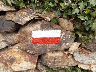Una banda bianca sovrapposta ad una rossa presente presso le partenze, gli incroci e in tutte le situazioni che possono generare dubbi sulla direzione da seguire. Un segnavia a bandiera (con tre bande verticali, laterali rosse e quella centrale bianca) recante il numero del percorso assegnato, che nel caso dei percorsi sul territorio calice sono dal 40 al 48.