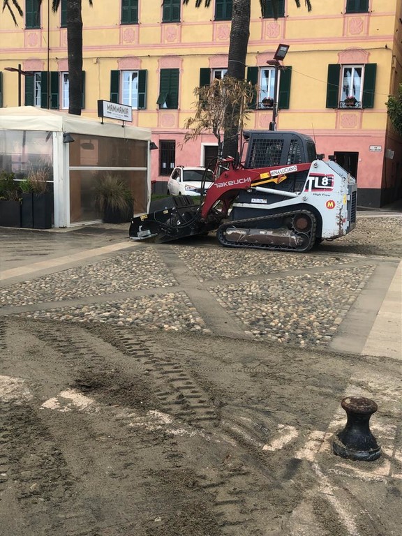 Sono stati avviati, a tre giorni dalla fine della mareggiata, i lavori di rimozione del materiale portato dal mare su viali e piazzette di Finale, da Marina a Varigotti.