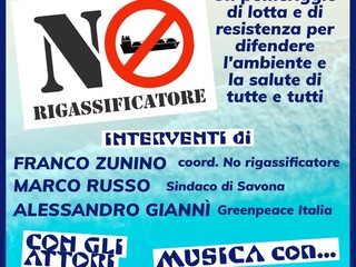 Il "Coordinamento no rigassificatore", cui aderiscono oltre 50 soggetti tra associazioni, movimenti e partiti, si è costituito per contrastare il progetto di rigassificatore che interesserebbe buona parte della nostra provincia, dallo specchio acqueo di Vado- Savona all'entroterra di Cairo Montenotte.