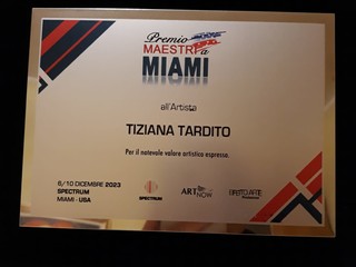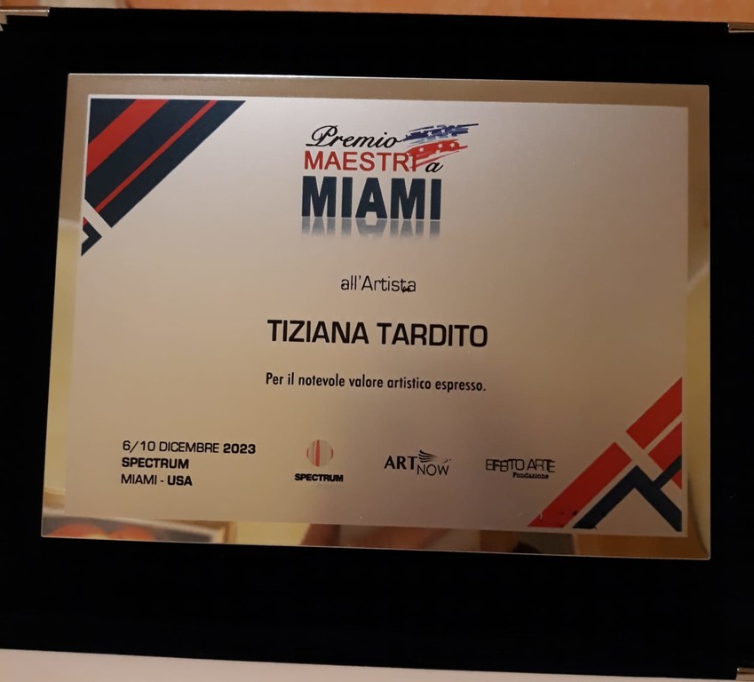 L'artista valbormidese Tiziana Tardito insignita del Premio Maestri a Miami. Il riconoscimento, istituito dal Comitato Scientifico della Fondazione Effetto Arte, è riservato a quelle personalità che con il loro impegno creativo hanno valorizzato l'attuale scenario artistico nazionale.