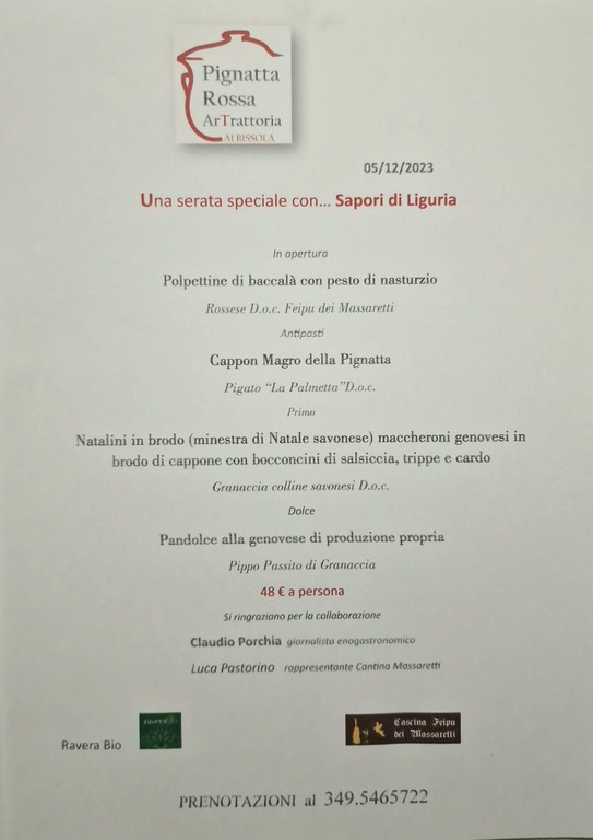 Proseguono con successo le serate a tema della Pignatta Rossa di Albissola con un invito a scoprire le radici più antiche della cucina ligure, ricca di sapore e di storia., ma sempre attenta nell'uso di ingredienti locali e sostenibili.