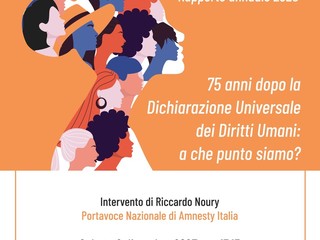 Riccardo Noury, portavoce nazionale di Amnesty Italia, interverrà sabato 2 dicembre 2023 alle ore17,15 alla presentazione del “Rapporto annuale 2023” di Amnesty International Italia, pubblicato da Infinito Edizioni, che raccoglie il lavoro di ricerca svolto ogni anno per documentare le violazioni dei diritti umani nel mondo.