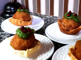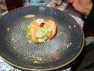 In apertura l’immancabile Baccalà presentato in deliziose polpettine con un pesto verde al Nasturzio.
