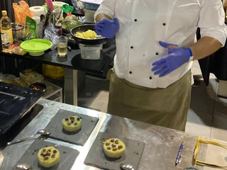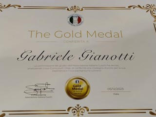 Nella sezione piatti vegetariani lo chef di Alassio ha preparato una rivisitazione dello Zemin di Ceci profumato allo Zafferano con dadolata di Panizza fritta, conquistando il terzo posto e ottenendo anche una importante Gold Medal.