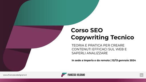 Il valore aggiunto del corso, secondo Francesco Belgrano, è la seconda parte di taglio pratico, insieme al workshop: "analizzeremo i vostri progetti, esamineremo casi studio e metteremo le mani in pasta insieme. Vi mostrerò anche come utilizzo diversi strumenti, come Excel, per analizzare e ottimizzare i dati di ogni testo. Infine, condividerò un metodo per velocizzare la scrittura di un testo, rispettando le regole di Google, grazie all'intelligenza artificiale."