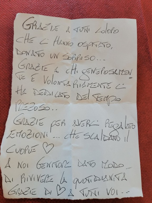 “Sono tre giorni ad alta carica emotiva – continuano i volontari -. Ogni persona con cui ti interfacci, ti fa comprendere quanto tutti quelli che affrontiamo nella quotidianità siano problemi irrisori di fronte a ciò che vivono queste famiglie. Colpisce profondamente lo spirito con il quale affrontano la malattia. Ad esempio – racconta -, ho conosciuto una bella famiglia peruviana, approdata in Italia proprio perché i tempi di cura per la loro bambina malata di tumore erano lunghi nel loro Paese. Qui in Italia, a Genova, ha già avuto accesso alle cure, a cui sta rispondendo molto bene. La mamma è una professoressa di storia, il papà un ingegnere civile, tre figlie. Una, purtroppo si ammala. Ma non solo. A un certo punto, la mamma scopre di avere un tumore. Intervento subito, ma non basta. Ha fatto la chemio e a breve inizierà la radio. Ora è senza capelli ed è anche riuscita a farmi ridere, mi ha detto ‘Luca, vedi, abbiamo la stessa pettinatura’. Che forza hanno! Sono un esempio per tutti”.