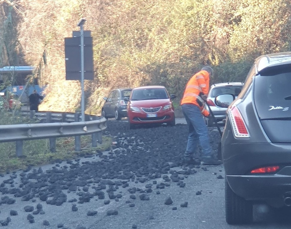 Un camion perde carbone sulla Sp29 del Cadibona in direzione Savona all'altezza di Montemoro e si accende nuovamente la discussione sull'importanza del ripristino delle Funivie.