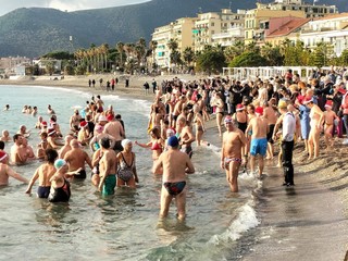 Anche il sole ha fatto capolino stamani (28 dicembre, ndr), portando una tiepida brezza e circa 16 gradi in acqua, sulle spiagge di Loano dove 211 "cimentisti", nello specchio acqueo davanti ai Bagni Medusa, hanno animato la 35esima edizione del tradizionale "Cimento Invernale".