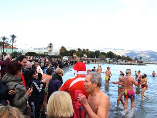 Con una temperatura esterna di 13 gradi e quella dell'acqua di 14,5 gradi hanno fatto il classico tuffo in mare di fine anno. L'uomo più anziano del cimento è Ettore Tropiano, 90 anni, di Albenga, mentre la signora più anziana è Maria Verdino, 80 anni, di Borghetto Santo Spirito.