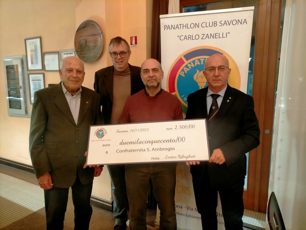 Venerdì 15 dicembre, durate il convivio di Natale, il Panathlon Club " Carlo Zanelli" di Savona ha consegnato alla Confraternita di Sant'Ambrogio di Legino, presente con il priore Gianni Varaldo, un assegno per una somma di 2.500 euro quale contributo per il restauro degli stucchi del presbiterio della chiesa di Nostra Signora del Monte, che ha più di sei secoli di storia tanto cara ai savonesi.