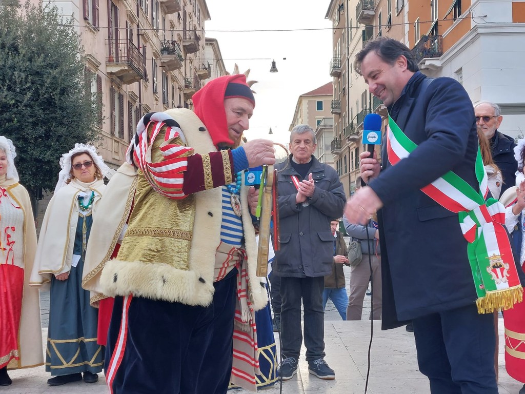 Cicciolin ha ricevuto le chiavi della città dal sindaco di Savona Marco Russo e il carnevale può iniziare.