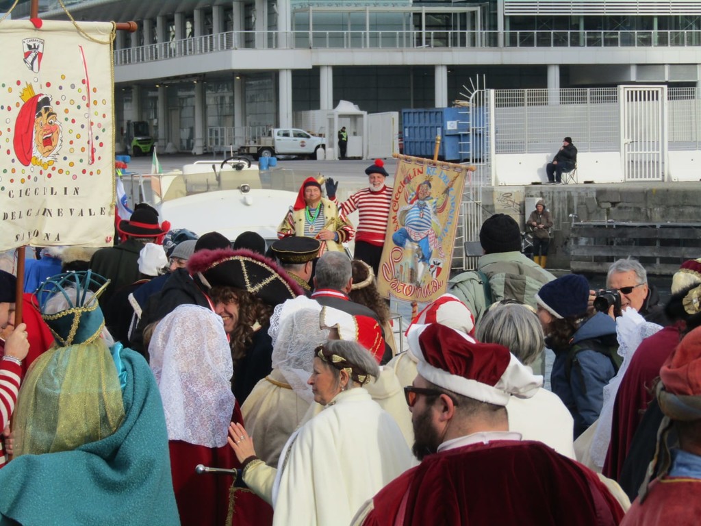Cicciolin è stato accompagnato da una flotta che vede come protagonisti i bambini e gli stessi hanno condotto la maschera fino al Molo Marinai d’Italia dove, come da antica tradizione, è avvenuto il bacio alla Torretta, simbolo di Savona.