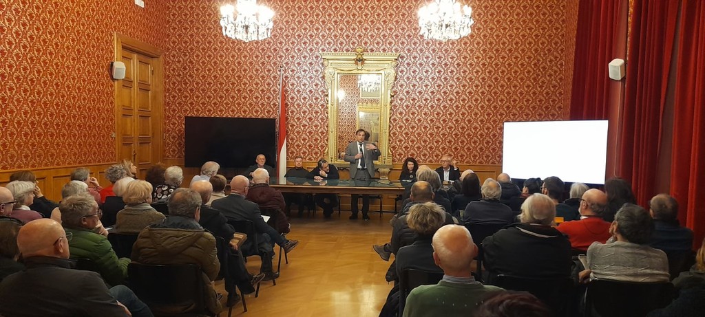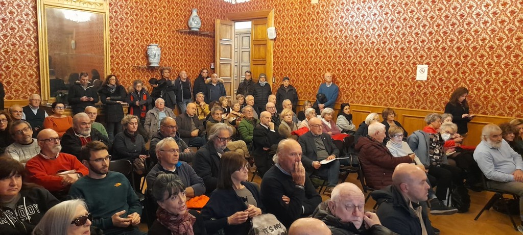 Era gremita la Sala Rossa di Palazzo Sisto, questo pomeriggio, per la presentazione al pubblico della variante al progetto della nuova passeggiata con il sindaco Marco Russo, l'assessore ai Lavori Pubblici Lionello Parodi, quello all'Urbanistica Ilaria Becco, l'ingegnere del Comune Marco Delfino e, per Dodi Moss (società che aveva vinto il concorso d'idee della riqualificazione del fronte mare) l'architetto Traverso e l'ingegnere Molfino.