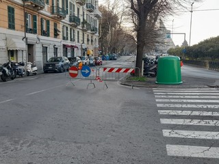 Ci sono ancora le transenne ad impedire il passaggio nel tratto di piazza del Popolo dove è andata a fuoco una spazzatrice di Seas, lunedì scorso 26 gennaio.