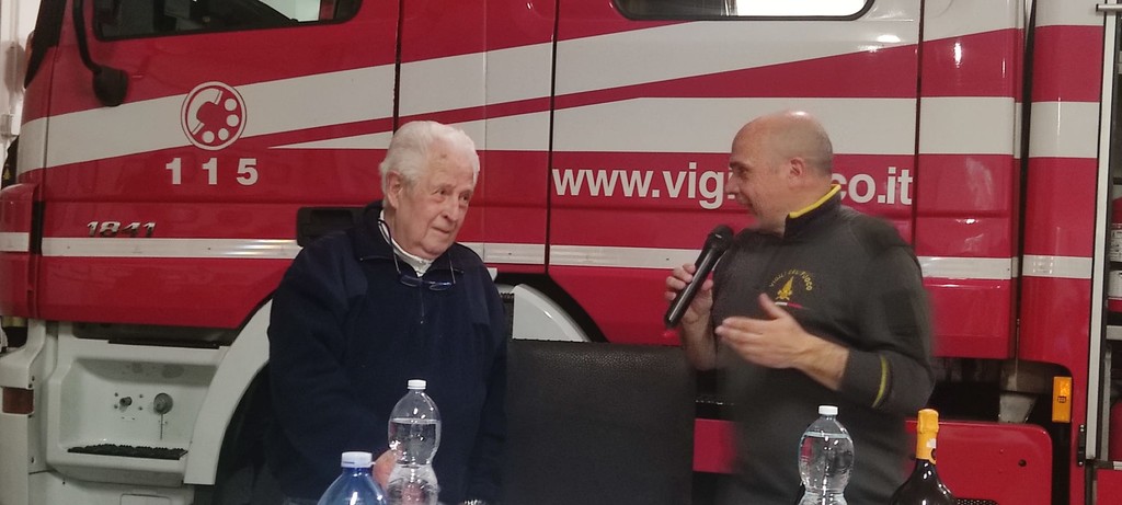 Nel corso della cena, attraverso la proiezione di una videointervista registrata alla guida del mitico APS Actros, Barlocco ha raccontato aneddoti dei suoi anni di servizio: una testimonianza capace di affrontare momenti simpatici ma anche di ricordare episodi drammatici affrontati in prima linea.