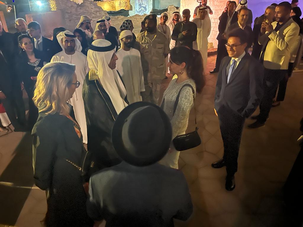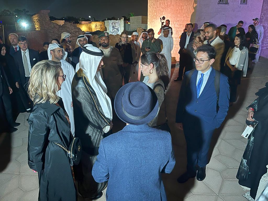 Durante l'evento, sia l'artista che il curatore hanno avuto il privilegio di incontrare lo Sceicco Sa'ud Bin Saqr al-Qasimi, un momento che ha ulteriormente arricchito la loro esperienza artistica.