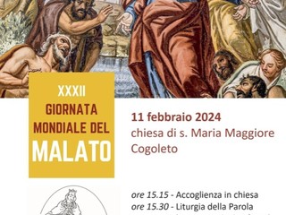 Domenica 11 febbraio si terrà la XXXII Giornata Mondiale del Malato, istituita da Giovanni Paolo II nel 1992 nel giorno della memoria liturgica della Beata Maria Vergine di Lourdes. Il tema scelto da papa Francesco è "Non è bene che l’uomo sia solo. Curare il malato curando le relazioni". Alle ore 15 nella Parrocchia Santa Maria Maggiore durante la Liturgia della Parola sarà amministrata l'unzione degli infermi. A seguire ci sarà un momento conviviale.