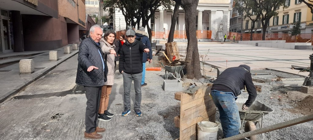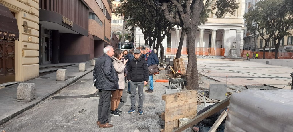 “Abbiamo messo pressione alla ditta e prevediamo di avere la parte della piazza finita per il 23 in modo che il 24 febbraio ci sia l'accesso libero al Teatro per l'evento di commemorazione di Renata Scotto”. Così ha spiegato l'assessore Nello Parodi nel sopralluogo di oggi, 15 febbraio, in piazza Diaz dove c'erano i consiglieri d'opposizione Arecco, Santi, Orsi, Meles, Schirru e quelli di maggioranza Maida, Gemelli, Lessi con l'assessore Becco al sopralluogo di questo pomeriggio sui cantieri di piazza Diaz chiesto dalla minoranza; presenti anche l'ingegnere del Comune Delfino e l'architetto Burlando di Neostudio.