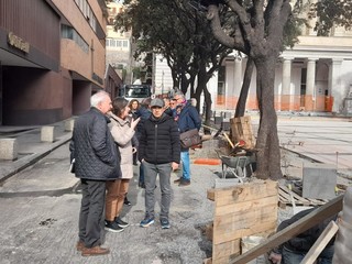 “Abbiamo messo pressione alla ditta e prevediamo di avere la parte della piazza finita per il 23 in modo che il 24 febbraio ci sia l'accesso libero al Teatro per l'evento di commemorazione di Renata Scotto”. Così ha spiegato l'assessore Nello Parodi nel sopralluogo di oggi, 15 febbraio, in piazza Diaz dove c'erano i consiglieri d'opposizione Arecco, Santi, Orsi, Meles, Schirru e quelli di maggioranza Maida, Gemelli, Lessi con l'assessore Becco al sopralluogo di questo pomeriggio sui cantieri di piazza Diaz chiesto dalla minoranza; presenti anche l'ingegnere del Comune Delfino e l'architetto Burlando di Neostudio.