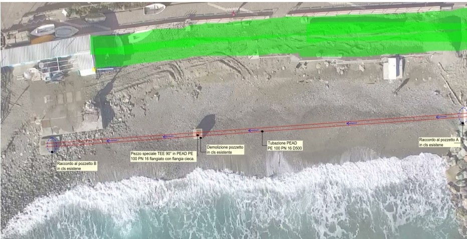 La mareggiata della notte fra venerdì 1 e sabato 2 dicembre aveva danneggiato la condotta fognaria principale, risistemata dopo la mareggiata di novembre, che era stata tranciata e portata via dal mare.