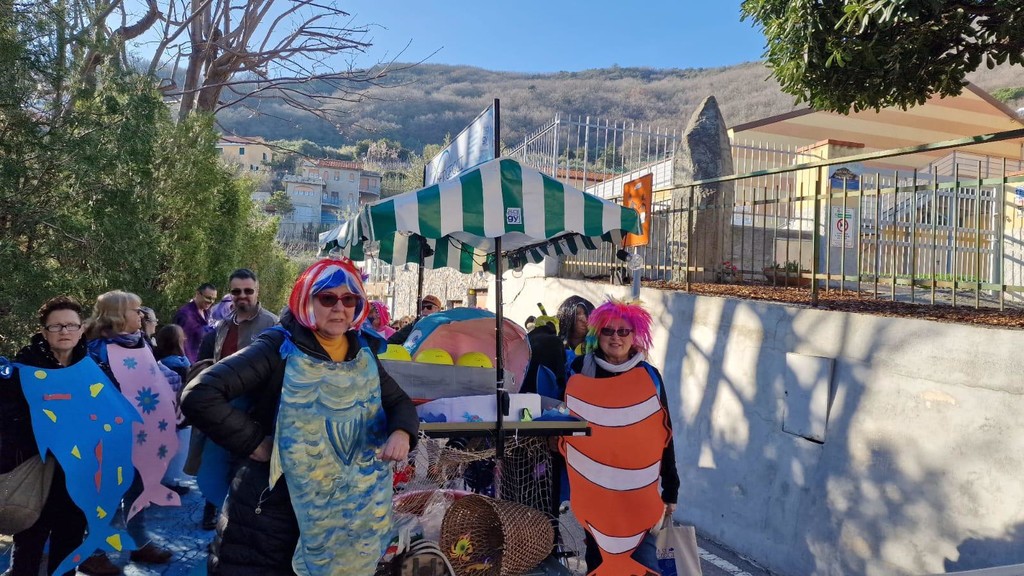 Ad aprire la sfilata, il carro ecologico di Bergeggi, a tema mare. Tanti pesci colorati animavano un carretto con bicicletta annessa, addobbato per l’occasione con un grosso pesce di cartapesta fatto a mano.