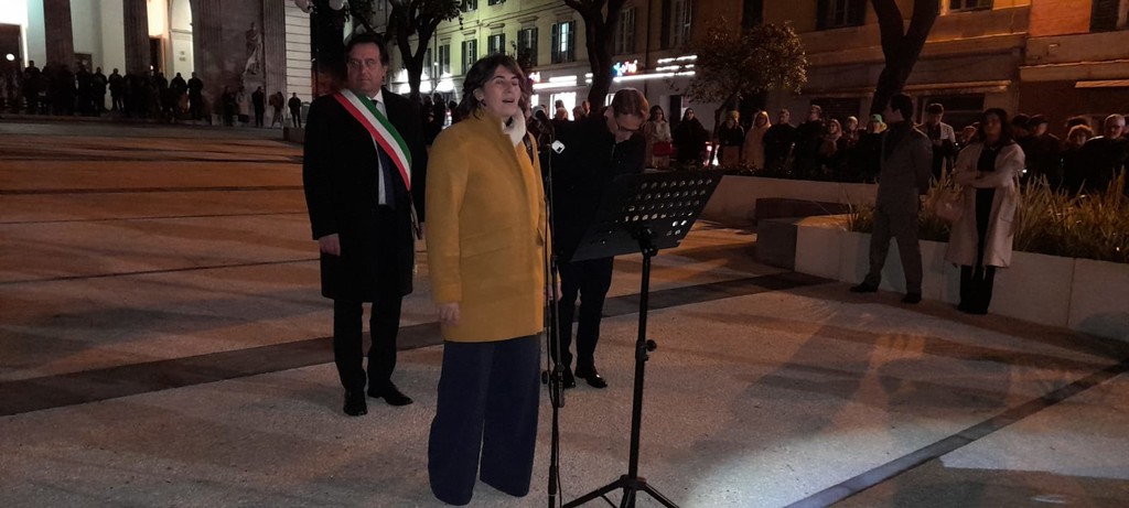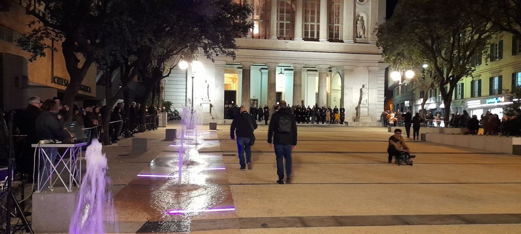 Al taglio del nastro si accendono le luci e l'acqua della fontana inizia a zampillare, mentre il coro nel colonnato del Chiabrera intona l'inno di Mameli. Savona ha la sua nuova piazza Diaz, inaugurata questo tardo pomeriggio del 24 febbraio.
