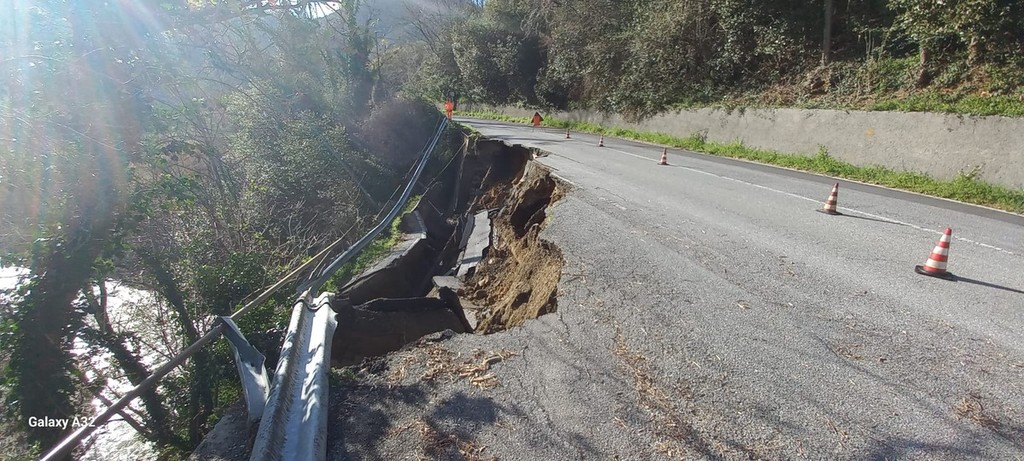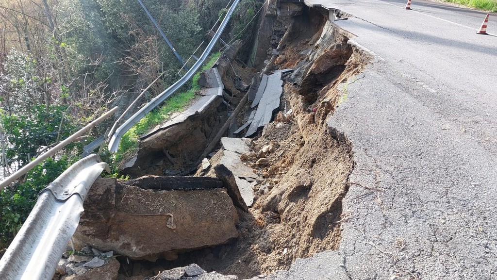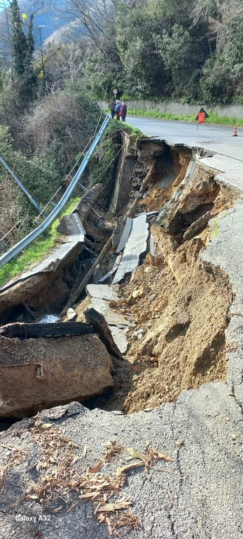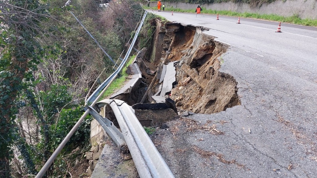 Una vera e propria voragine nell'asfalto e nel versante che sostiene la carreggiata quella che si è aperta, nel primo pomeriggio odierno (7 marzo, ndr) lungo la strada provinciale che da Savona porta al Santuario, la Sp 12.