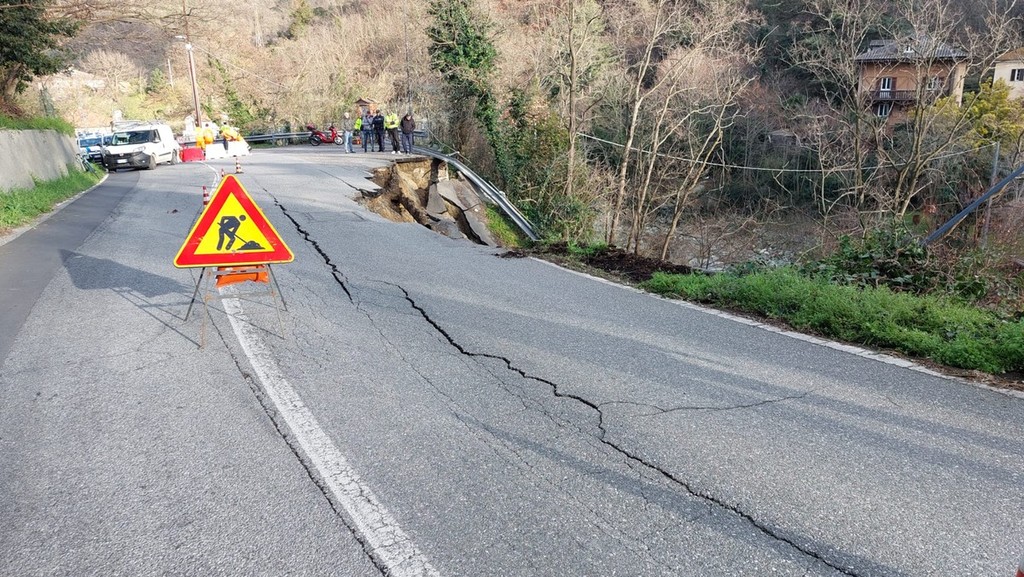 Savona, voragine sulla Sp12 del Santuario: franata parte della carreggiata, strada chiusa (FOTO e VIDEO)
