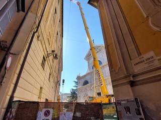 E' prevista fino a domani la chiusura di piazza Duomo per i cantieri di restyling di Palazzo Della Rovere, dove si sta utilizzandi una maxi gru.