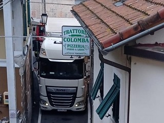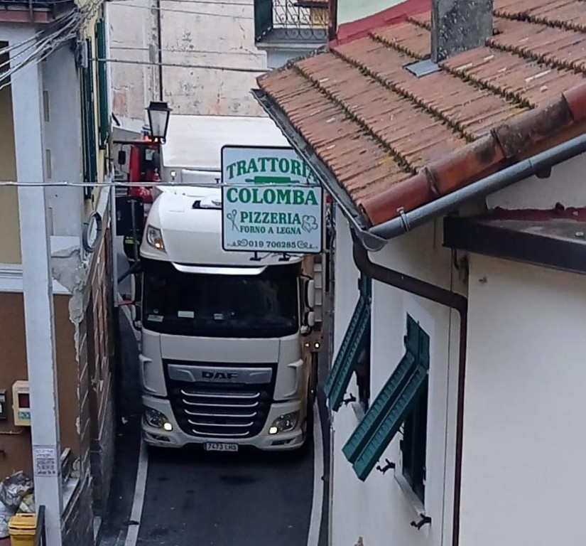 AGGIORNAMENTO ORE 8.13: il mezzo pesante con targa straniera è stato liberato. La viabilità è stata ripristinata.