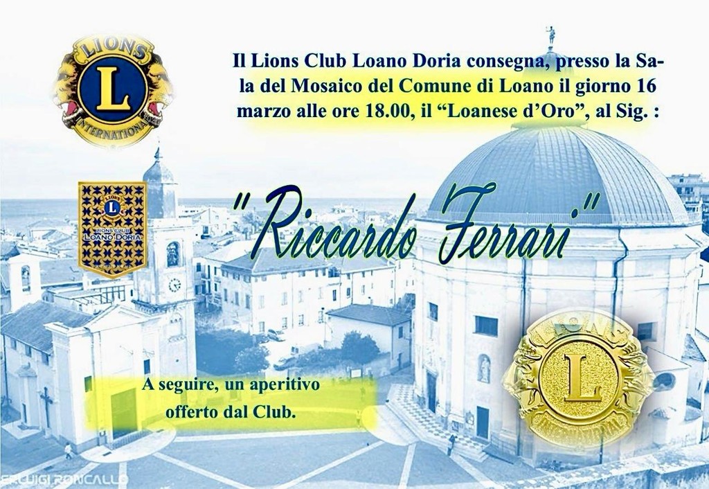 Per questi motivi è stato un onore ed un piacere per il Lions Club Loano Doria attribuire a Riccardo Ferrari il meritato riconoscimento “Loanese d’Oro” 2024, che gli è stato consegnato dall’attuale Presidente Marco Careddu sabato 16 marzo, nella Sala del Mosaico del comune di Loano.