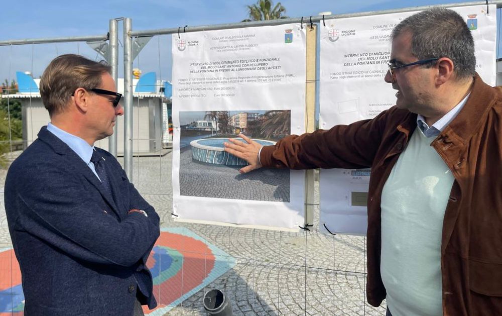 Il miglioramento estetico e funzionale del molo Sant’Antonio e il contemporaneo recupero della fontana in fregio al lungomare degli Artisti è invece stato l’oggetto della visita dell’assessore Scajola ad Albissola Marina insieme al sindaco Gianluca Nasuti. 250 mila euro l’importo dei lavori, in fase di completamento, di cui 200mila stanziati da Regione Liguria.