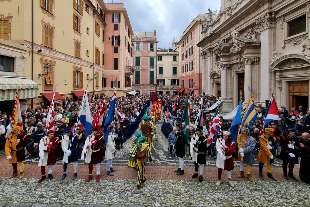 L'inizio del corteo, alle ore 15.30 in piazza Sant’Ambrogio, è segnato dalla consegna delle bandiere dei Rioni e delle Frazioni di Varazze da parte dell'allora Podestà e dai suoi Consiglieri, seguita dalla rappresentazione scenica degli otto gruppi. Attraversando i suggestivi vicoli della città, da San Nazario a Borgo e Solaro, il corteo culmina in Piazza Santa Caterina con la ripetizione dell'intera rappresentazione scenica.