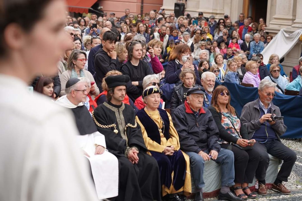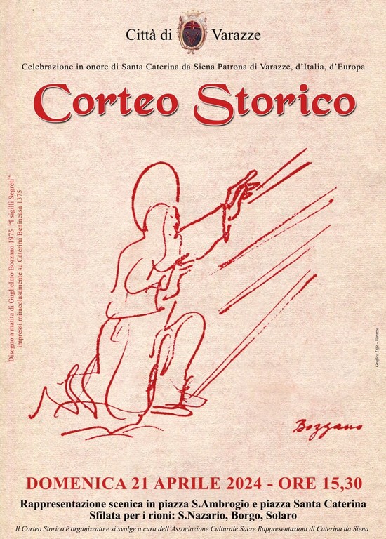 Le celebrazioni prendono il via già il 21 aprile con il suggestivo Corteo Storico, curato dall'Associazione Culturale Sacre Rappresentazioni di Caterina da Siena. Un corteo composto da circa 500 attori e comparse, divisi in gruppi che rievocano sette episodi della vita della Santa, arricchiti dal 1998 con un episodio del Beato Jacopo da Varagine, in occasione del settimo centenario della sua morte.