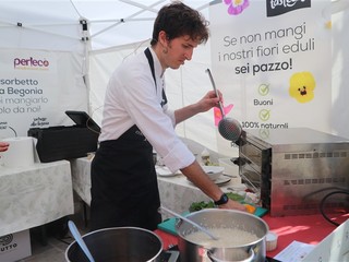 Fra le molte novità di questa edizione vorrei partire dal coinvolgimento maggiore dei ristoranti, che hanno offerto piatti e menù con i fiori, dai cocktail agli aperitivi, dai pranzi veloci alle cene romantiche i fiori erano davvero ovunque. Le scuole hanno dato un contributo determinante non solo l’alberghiero che ha ospitato il contest e la masterclass, ma anche le scuole primarie che hanno lavorato sul tema delle emozioni legate ai fiori ed al cibo dando il via al progetto di segnaletica emozionale, che sarà portato sulla ribalta nazionale dalla Fata Zucchina e dalla FI.DA.PA. Interessante la collaborazione con l’Associazione narratori del Gusto, con il sold out dell’aperitivo sensoriale. Le eccellenze piemontesi come l’asparago di Santena e il riso Isos, una selezione speciale di carnaroli insieme ai formaggi e liquori della valle Camonica. Da segnalare anche l’esordio del contest dedicato alle vele, che hanno saputo portare al largo i sapori della cucina con i fiori.