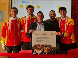 Il sindaco Aldo Picalli e l'amministrazione comunale hanno voluto premiare il sodalizio giallorosso per la vittoria del campionato di Prima Categoria e il passaggio in Promozione, un traguardo che mancava da 35 anni.
