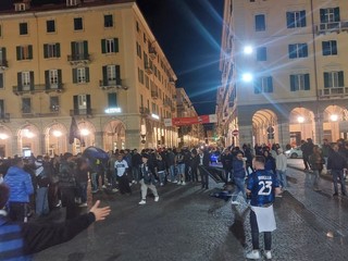 Al triplice fischi i tifosi interisti savonesi si sono catapultati per le vie di Savona raggiungendo la classica "sede" del tifo del comune capoluogo Piazza Mameli.