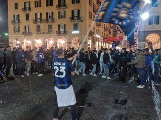 E sono scattati i festeggiamenti tra caroselli, clacson suonati, cori, bandiere, fumogeni, sciarpe e maglie tinte di nerazzurro