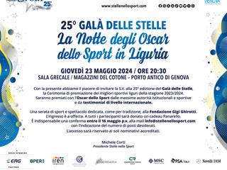 In attesa di conoscere i nomi degli "eletti", inizia il conto alla rovescia verso la 25° edizione del Galà delle Stelle in cui i migliori sportivi liguri della stagione 2023/2024 saranno premiati con l’Oscar dello Sport dalle massime autorità istituzionali e sportive e da testimonial di livello internazionale.