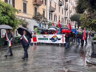 La pioggia non ha spaventato le organizzazioni sindacali, lavoratori e tanti savonesi che hanno preso parte al corteo del Primo Maggio organizzato da Cgil, Cisl e Uil. Proprio per il maltempo gli interventi di Daniela Barbaresi, segretaria confederale nazionale di Cgil, Patrizio Lai di Uil e del sindaco Marco Russo, si sono tenuti nell'atrio di Palazzo Sisto e non c'erano i mezzi della compagnia portuale della Pippo Rebagliati. Ad Albenga ha parlato il segretario della Cisl Claudio Bosio.
