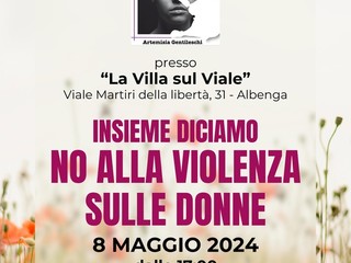 “Insieme diciamo no alla violenza sulle donne”: l’evento benefico ad Albenga, organizzato a favore del Centro Antiviolenza “Artemisia Gentileschi”, si terrà mercoledì 8 maggio dalle 17 presso “La Villa sul Viale”, in viale Martiri della Libertà 31.