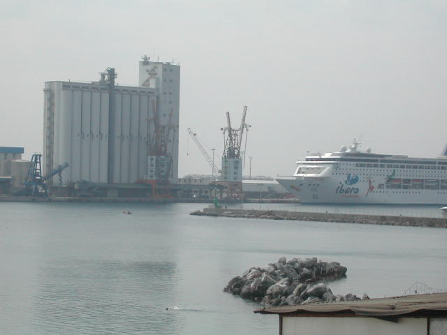 Le operazioni durante lo scarico di bobine di cellulosa da una nave. L'uomo si è fatto male ad una spalla