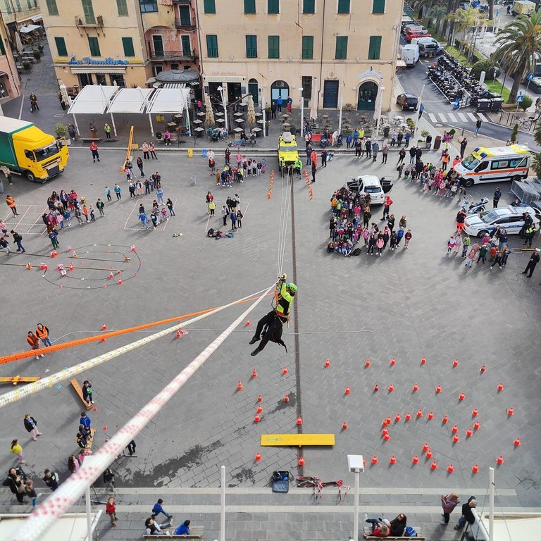 Hanno partecipato numerosi enti locali, comprese le pubbliche assistenze e la polizia locale, che hanno collaborato con il Soccorso alpino speleologico di Finale Ligure per mostrare in modo spettacolare una simulazione di teleferica con la calata di un operatore.