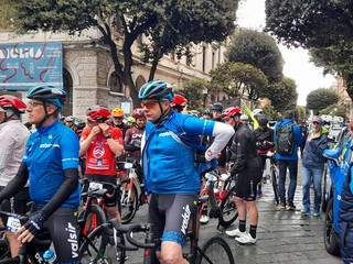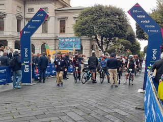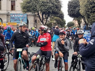 Chiappucci e Bugno sono due dei campioni che prendono parte al Giro E-Bike partito, questa mattina, 7 maggio, alle 12 da piazza Sisto IV a Savona.