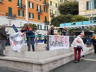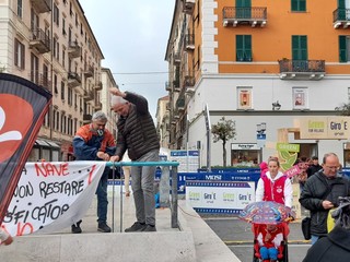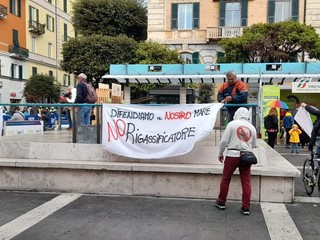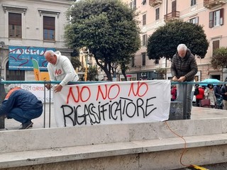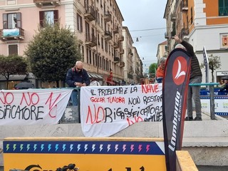 La partenza della gara è stata l'occasione per il Comitato contro il rigassificatore di esporre gli striscioni contro l'installazione dalla Golar Tundra a pochi chilometri dalla costa della città capoluogo e di Vado Ligure.